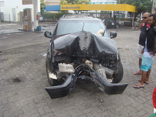 batida acabou derrubando dois poste em frente ao Posto de Gasolina, deixando muitas ruas do bairro às escuras, e
